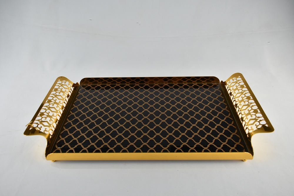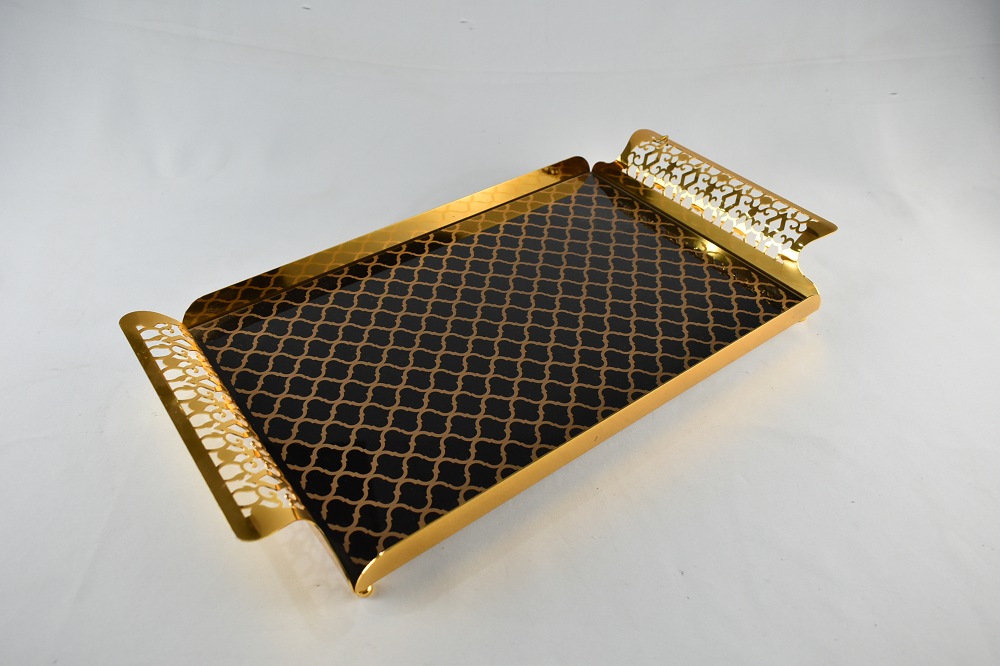 PLATEAU A SERVIR RECTANGLE 29*26.5 CM AVEC UNE BASE EN VERRE ET UN CADRE EN ACIER INOXYDABLE