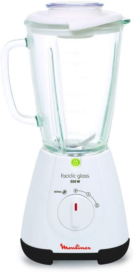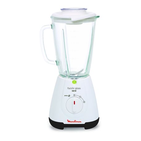 Ce blender Moulinex est doté d'un bol en verre (1,75 litre) facile à installer en toute sécurité grâce au clic de verrouillage et son indicateur visuel "faciclick" (rouge = bol non verrouillé / vert = bol prêt à être utilisé).