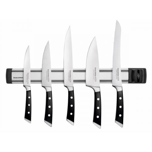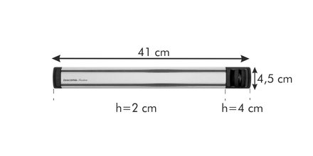 Destiné au stockage organisé de couteaux de cuisine avec des lames en acier inoxydable sur le mur de l'unité de cuisine. Avec des aimants puissants pour une fixation sûre des couteaux et un affûteur avec une surface en diamant pour un affûtage efficace des couteaux. Fabriqué en acier inoxydable de haute qualité, en aluminium anodisé et en plastique résistant. Au besoin, essuyez avec un chiffon humide et séchez. Les instructions de montage, y compris les accessoires de montage, sont incluses.