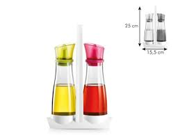 Excellent pour servir l'huile et le vinaigre. Stocké dans un support. Fabriqué en excellent verre borosilicaté, silicone souple et plastique résistant. Conseil utile: Pour préparer de l'huile assaisonnée avec des herbes, des épices, des piments, de l'ail, etc., utilisez l'infuseur VITAMINO 250 ml .