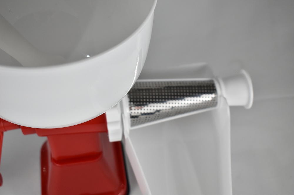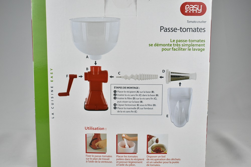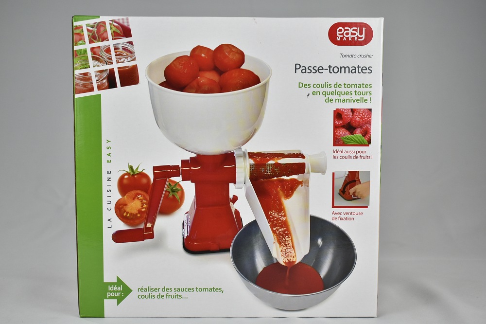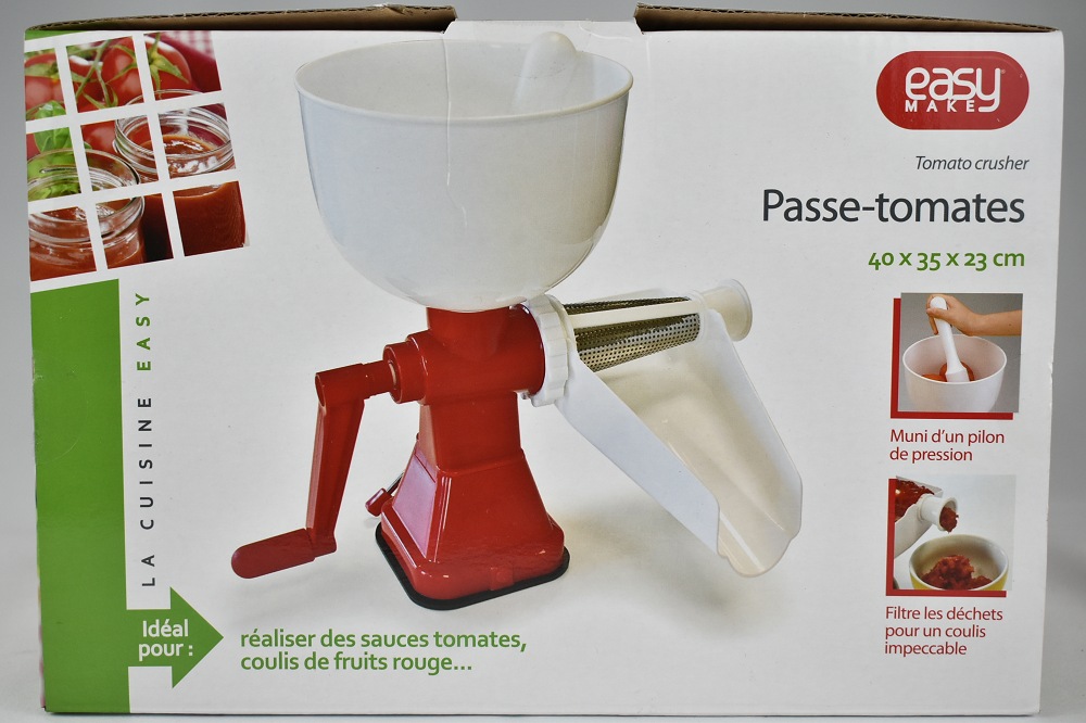 La saison des tomates est le moment idéal pour préparer des sauces «maison» à l'italienne! Avec cette purée, c'est un jeu d'enfant: quelques tours de levier suffisent pour faire 2 kg de tomates ou de purée de fraises en une seule fois. Les pelures et les pépins sont séparés. La base est équipée d'une ventouse pour que la machine puisse être fermement fixée sur des surfaces lisses. Corps en plastique, vis en nylon robuste. Facile à démonter et au lave-vaisselle.