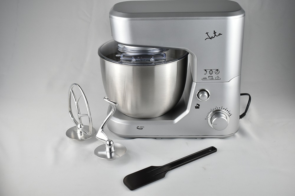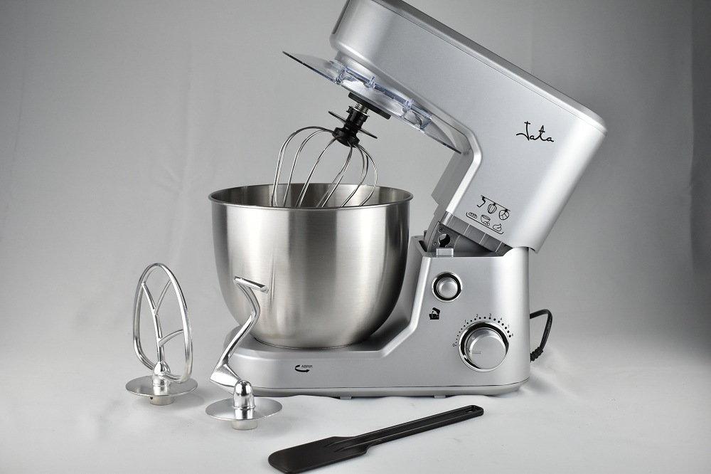 Comprend un crochet pétrisseur, une tige de fouet, un mélangeur et une spatule.