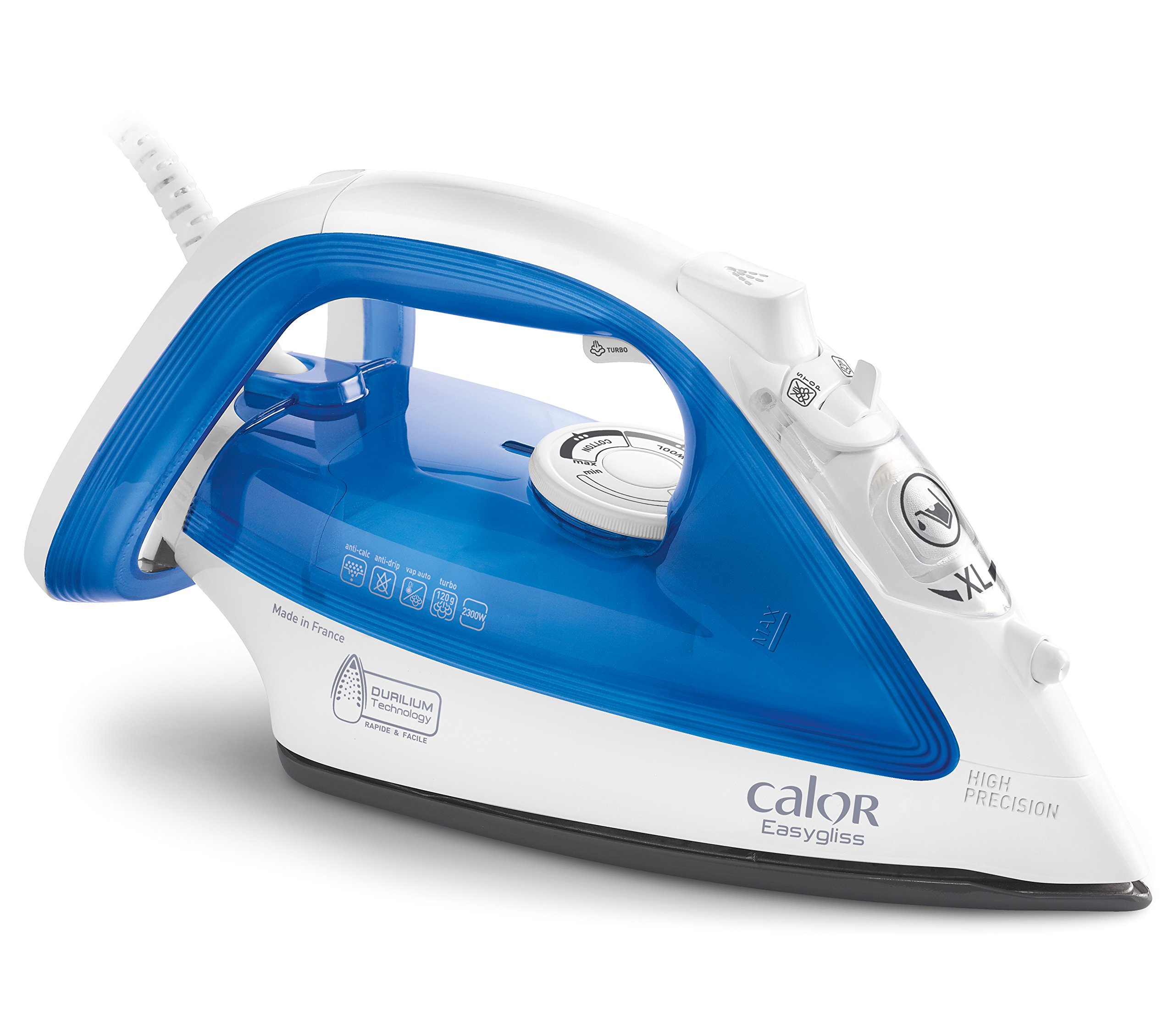 Le fer vapeur Easygliss est équipé de la semelle Durilium qui procure une glisse rapide et facile, tout en procurant une meilleure résistance aux rayures. Son système anticalcaire intégré vous assure des performances vapeur durables. Un débit vapeur continu de 35 g/min garantit des résultats rapides. La fonction pressing de 120 g/min s'attaque aux plis tenaces, dans un équilibre parfait de confort et d'efficacité. Avec son système anti-gouttes, évitez les traces d’eau sur votre linge.