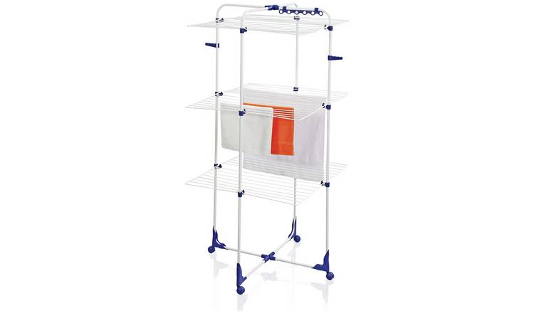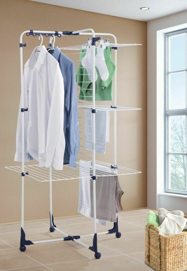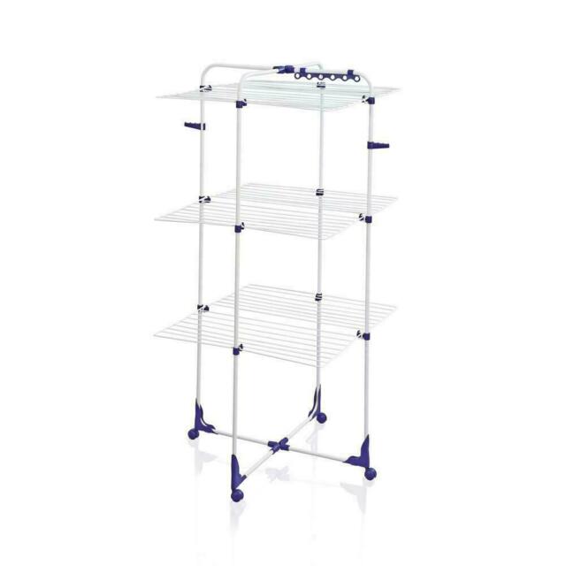 La tour de séchage Leifheit 340 est une véritable merveille d'espace: avec sa surface d'appui de seulement 69x69 cm, la tour de séchage peut trouver un petit espace personnel dans chaque niche: que ce soit dans une petite salle de bain, sur un balcon compact ou dans un couloir étroit. Trois plates-formes de séchage, l'une sur l'autre, offrent une longueur collectée de 34 m et un espace pour jusqu'à 4 machines à laver de vêtements. Avec son châssis pliable, cette tour de séchage est même utilisable à la moitié de sa taille. Même les barres sur les plates-formes peuvent être pliables individuellement - la Tower 340 peut convenir aux vêtements de grande taille et, surtout, longs. Grâce à 4 rouleaux lisses intégrés, il peut être pleinement utilisé et dans toutes les directions. Les rouleaux possèdent un pivot à 360 ° entièrement mobile. La tour de séchage Leifheit 340 est le support de séchage idéal pour les familles ayant peu d'espace pour sécher. Même après utilisation, le Tower 340 prend peu de place: il peut être assemblé en douceur et rangé sans effort entre une commode et le mur. Grâce à ses deux cintres latéraux et à ses 6 ouvertures supplémentaires pour des cintres supplémentaires, cette tour de séchage offrira encore plus d'espace pour sécher. Il mesure 146 cm de haut.