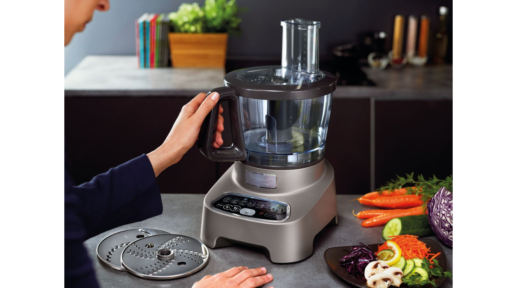 | Accessoire(s) fourni(s) : Rapeur/Eminceur, Fouet, crochet, batteur, Fouet, Batteur, Blender, Presse-agrumes, Hachoir, Verseur et protecteur, Disque(s) râpeur, Disque(s) éminceur, Disques réversibles (râper, émincer), Pétrin, Couteau hachoir, Boîte de rangement des accessoires | |