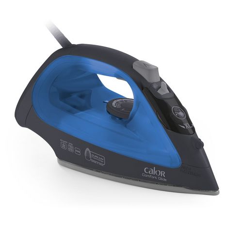 Fer à repasser Comfort Glide - Semelle Durilium - Puissance 2500 Watts - Vapeur en continu 0-40 g/mn - Pressing 150 g/mn - Réglage automatique de la vapeur - Capacité du réservoir 270 ml - Spray - Système anti-calcaire - Anti-goutte - Defroissage vertical - Coloris bleu et noir