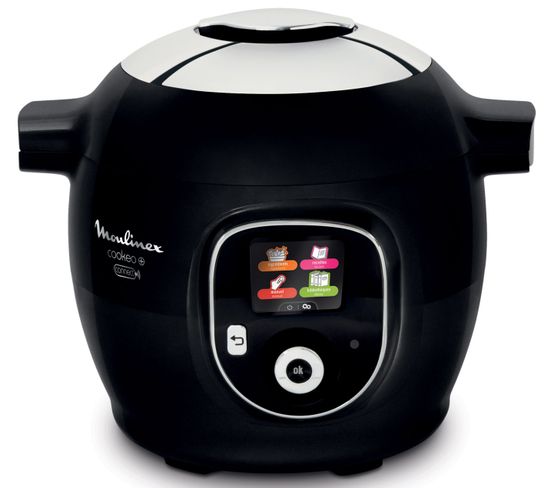 Multicuiseur connecté Cookeo Plus Connect - 200 recettes pré-programmées - Système interactif : communique grâce à une application à partir de votre smartphone ou tablette compatible - Bénéficiez de près de 2000 recettes grâce à l'application My Cookéo - Multicuiseur intelligent 6 litres - Guide culinaire interactif et intelligent par ecran digital couleur - 6 modes de cuisson - Fonction réchauffage, fonction cuisson à la vapeur, fonction mijoter, fonction de dorage, fonction de cuisson sous pression, fonction de cuisson douce - Maintien au chaud et départ différé - Puissance 1600 W - Capacité 6 L - Cuve en céramique amovible compatible lave-vaisselle - Ce multicuiseur est fourni avec une balance de cuisine connectée et moule de cuisson - Coloris noir