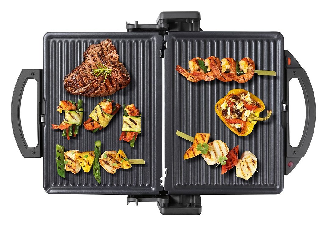 1800 W haute puissance La grille de contact garantit des performances au plus haut niveau. La puissance de 1800 W permet un chauffage rapide et une production de chaleur constante - pour une cuisson plus rapide et les meilleurs résultats. Pour rendre une variété saine et savoureuse encore plus agréable. Les fonctions grill facilitent grandement la préparation de tous les types d'aliments. Par exemple, les plaques de cuisson inclinées éliminent la graisse grâce à des canaux spéciaux et garantissent ainsi une cuisson faible en gras. Plaques de gril amovibles Une fois que vous avez fini de savourer des plats savoureux, le nettoyage n'est plus un problème. Les plaques de gril amovibles en aluminium ont un revêtement antiadhésif et peuvent être lavées au lave-vaisselle. Contrôle en douceur de la température Faites griller jusqu'à ce que le goût souhaité soit obtenu - grâce au contrôle de la température en douceur, vous pouvez choisir la température idéale pour chaque plat. Les repas sont grillés à la température parfaite des deux côtés pour les meilleurs résultats. Par exemple, les steaks peuvent être grillés à la perfection: dorés à l'extérieur et encore roses à l'intérieur. Rapide, simple, facile. Puissance: 1800 W Zone de chauffage: 310x220 Contrôle en douceur de la température, interrupteur marche / arrêt intégré Tables de cuisson amovibles Réglage de la hauteur de la plaque supérieure Plaques chauffantes avec rainure de drainage de graisse, recouvertes d'un revêtement spécial antiadhésif Lampe témoin Conseils pour griller sur l'appareil Possibilité d'assembler l'appareil