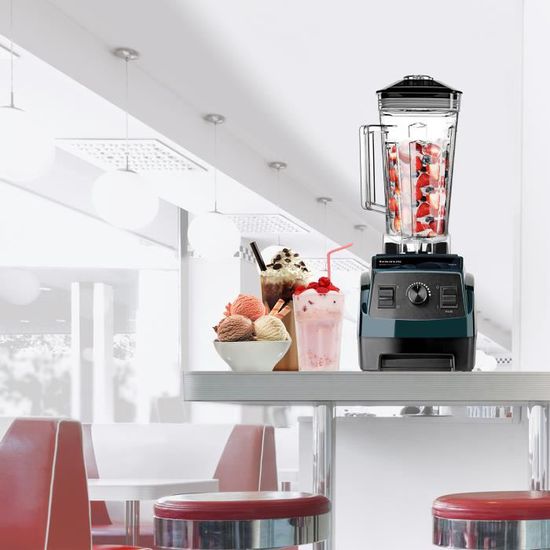 Mélangeur à culbuteur professionnel haute performance. Obtenez les meilleurs résultats en quelques secondes. Sa puissance élevée et ses lames à 8 tranchants peuvent traiter tous les types d'aliments, pulvérisant même les aliments les plus durs en quelques secondes. Broyez de la glace et préparez facilement des shakes, des smoothies et des crèmes. Pichet sans BPA et incassable.