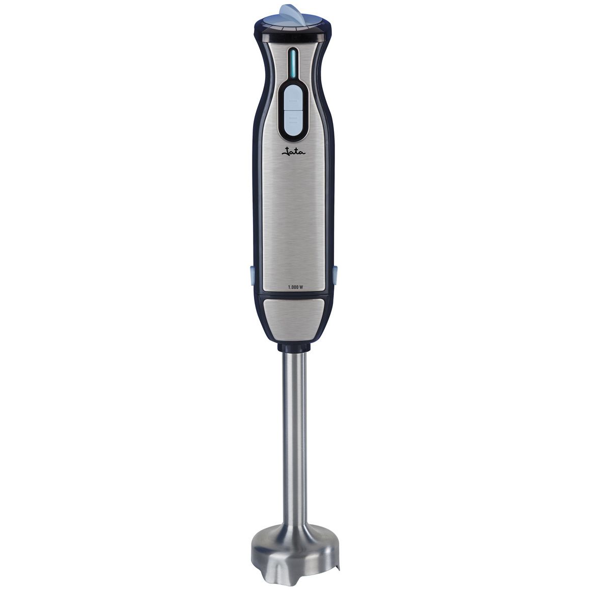 Haute puissance 1 000 W.,Régulateur de vitesse électronique.,Double lame en titane d'une grande solidité.,Pied amovible en acier inoxydable.,2 boutons poussoirs. 2 vitesses.,Façade en acier inoxydable.,Accessoires inclus,- Fouet en acier inoxydable.- Hachoir à lame en acier inoxydable.- Gobelet doseur de 600 ml avec couvercle.,Voyant lumineux,Poignée ergonomique, toucher en caoutchouc.,Anneau de suspension,Tension 230 V.