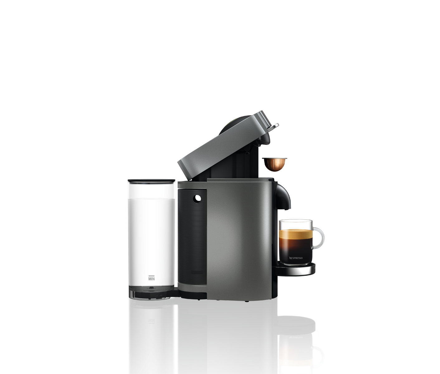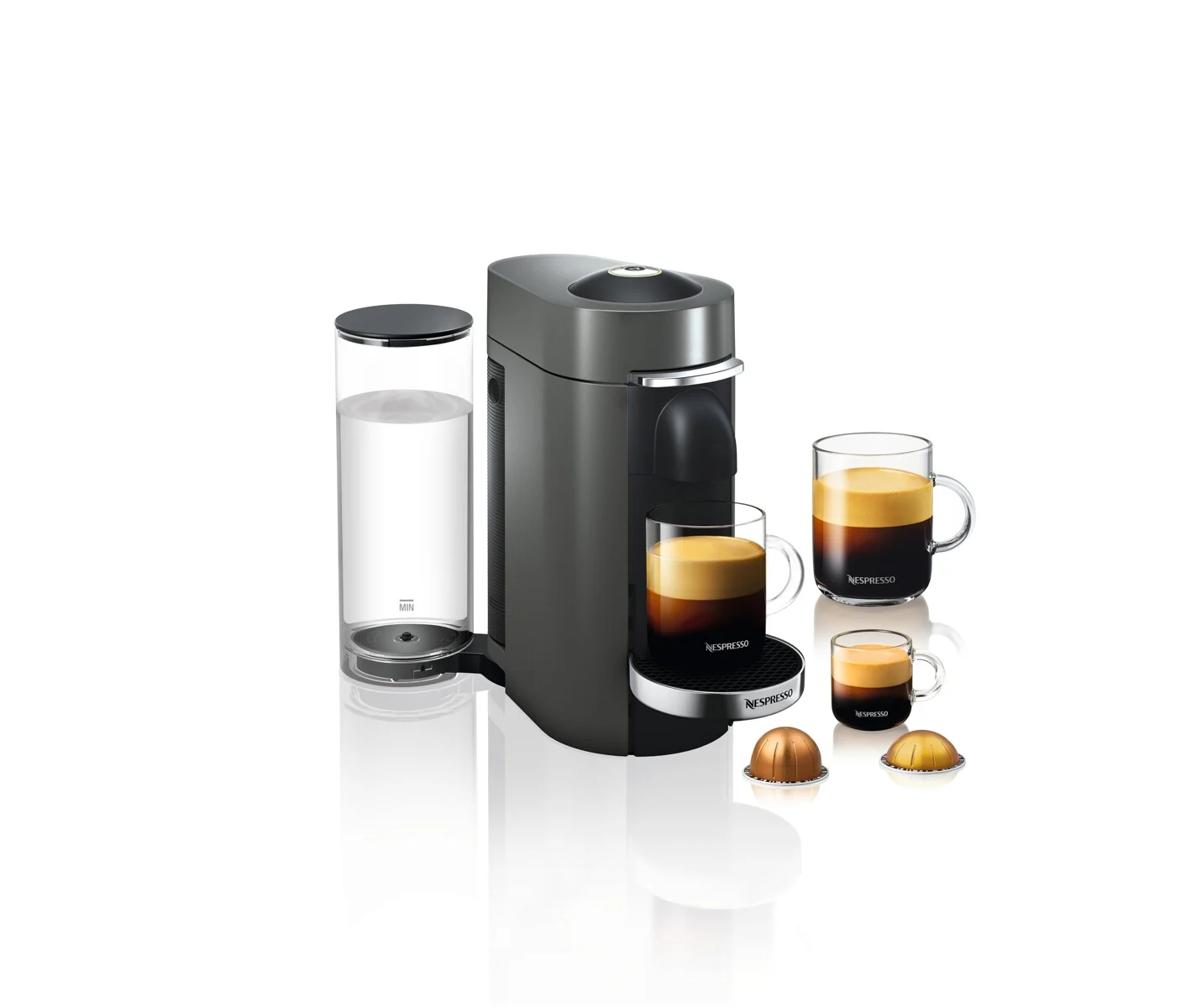 Vertuo Plus offre la combinaison parfaite de style et de commodité pour une expérience de café unique à la maison. - Infuse une large gamme de cafés de haute qualité (5 oz, 8 oz, 14 oz), d'espressos et d'espressos doubles. - Système d'infusion de précision - ajuste automatiquement les paramètres d'infusion à chaque capsule pour un résultat constant dans la tasse. - Position du réservoir d'eau réglable, pour optimiser l'espace du comptoir de la cuisine. - Le système d'ouverture automatique de la machine facilite l'insertion et l'éjection des capsules. - Disponible dans une variété de couleurs et de finitions. Les modèles de luxe présentent des accents chromés et un réservoir d'eau plus grand (60 oz) .