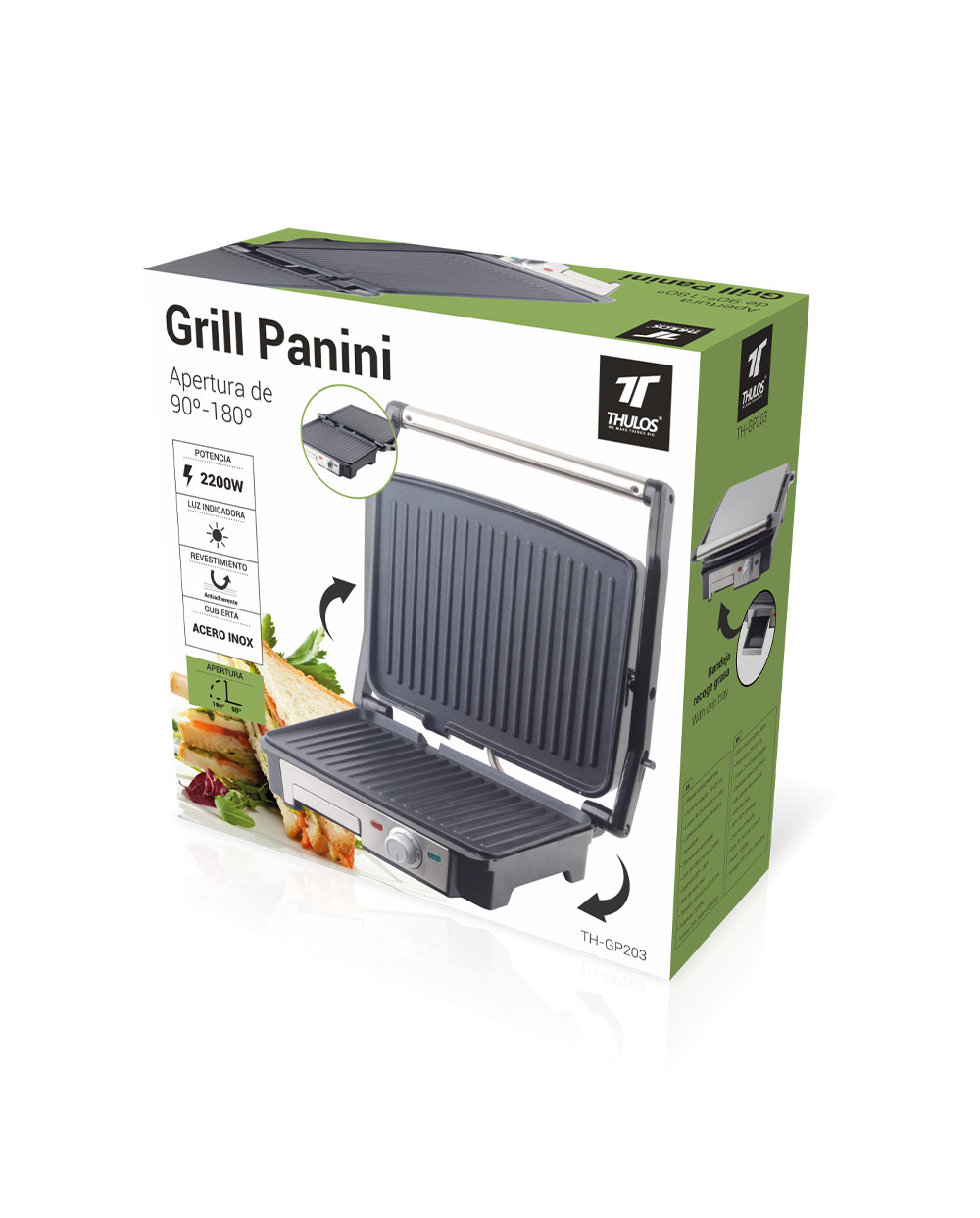 Grill Panini 2200W, ouverture 90º et 180º. THULOS TH-GP203
