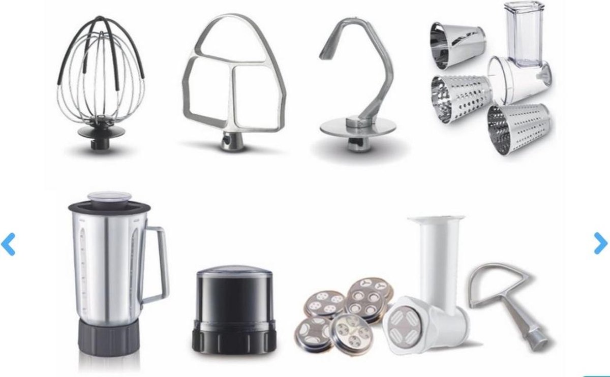 Vous avez les idées créatives, l'appareil a le pouvoir puissant ! Le robot culinaire Masterchef Gourmet+ est votre partenaire idéal pour la confection de gâteaux et toutes vos autres idées de pâtisserie, grâce à son moteur de 1100 W et son bol de 4,6 litres qui vous permet de préparer jusqu'à 1,8 kg de pâte à gâteau. Avec le batteur Flex Whisk unique, vous obtenez des blancs d'œufs parfaitement et légèrement fouettés, même avec un seul œuf. Mélanger la pâte à gâteau et pétrir la pâte à pain ou à pizza avec le batteur en fonte et le crochet pétrisseur. Le tout dans un boîtier qui a été fabriqué avec soin, avec un bol et des boutons magnifiquement finis ! Préparez de délicieux repas faits maison avec les accessoires inclus : un mixeur, un accessoire pour couper et râper, un mini hachoir et un accessoire pour pâtes.