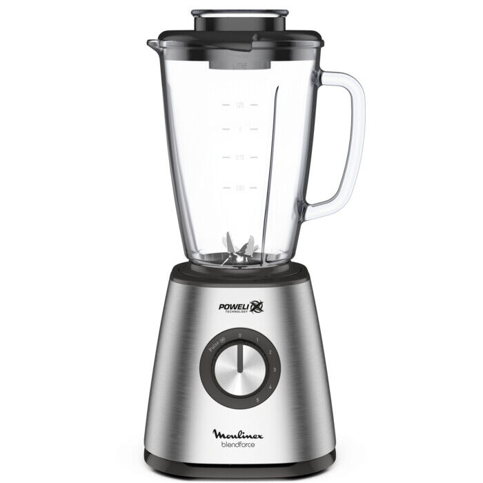 Découvrez le blender idéal au quotidien ! Le Blendforce de Moulinex est votre nouvel allié pour des smoothies parfaits, des shakes, des sauces et plus encore. Les lames Powelix avancées permettent un mixage 30 % plus rapide* pour des résultats incroyablement lisses en un rien de temps, avec cinq vitesses et une fonction Pulse entraînées par un moteur de 800 W, le système de verrouillage intelligent pour un mélange en toute sécurité, une technologie avancée de refroidissement par air et bien plus encore, le tout dans un revêtement en acier inoxydable de qualité supérieure qui apportera une touche de style à n’importe quelle cuisine ! * par rapport à la génération précédente du BLENDFORCE LM30.