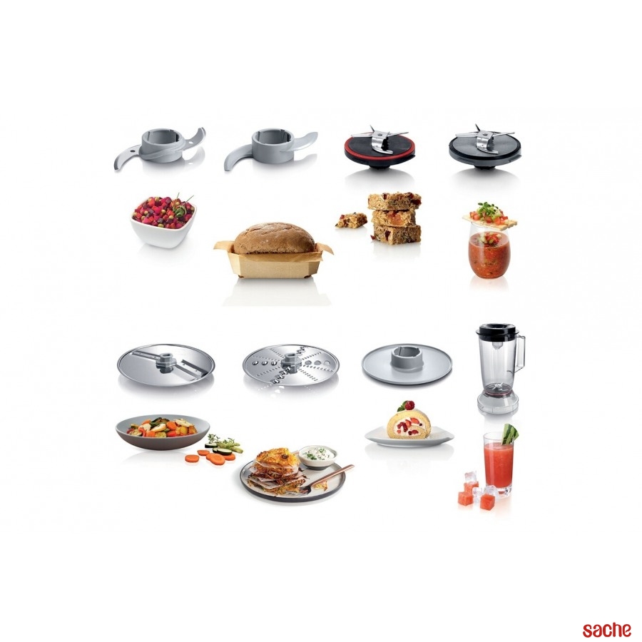 Râper, émincer, moudre, hacher, mélanger, et bien plus encore ou encore pétrissez vos aliments de manière optimale grâce à la diversité des accessoires tels que le bol mixeur, et les jeux de lames différentes comme le couteau multifonction MultiLevel6 pour réaliser vos préparations !