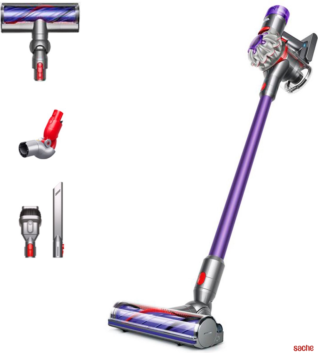 Le moteur numérique de pointe effectue 110 000 tours/minute, générant ainsi une aspiration puissante sur les moquettes et les sols durs. Grâce à sa capacité à stocker une charge élevée par unité de volume et à libérer rapidement cette énergie, le Dyson V8 fournit jusqu'à 40 minutes d'aspiration sans baisse de régime. Autonomie en mode Normal : 25 minutes brosse motorisée ; 40 minutes brosses passives 15 cyclones répartis sur 2 rangées, fonctionnent en parallèle pour accroître le flux d'air et capturer la fine poussière. Capture les allergènes et rejette un air plus propre. Conçu pour absorber les vibrations et atténuer le niveau sonore, et ainsi maintenir à un faible niveau. Brosse Motorbar Meilleur rendement. Les poils rigides en nylon gainés pénètrent et décollent efficacement la poussière des moquettes. Poils en fibre de carbone pour retirer la poussière fine des sols durs. 75% plus puissante que la brosse motorisée du V6 Cordfree. Accessoire combiné Large conduit pour les miettes et les grosses particules et brosse pour la poussière. Long suceur Pour nettoyer dans les endroits confinés. Adaptateur pour meubles bas Se plie jusqu'à 90° et vous permet de nettoyer en dessous de vos meubles bas sans vous baisser. Pour recharger et ranger l'appareil et ses accessoires lorsqu'il n'est pas utilisé. Recharge votre aspirateur, avec ou sans la station d'accueil.