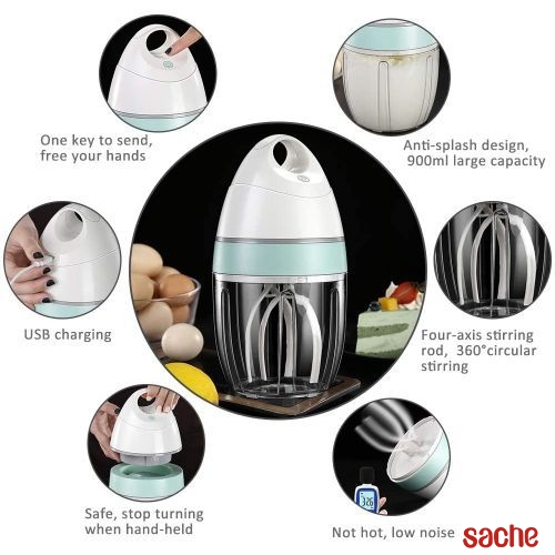 :Démarrage à une touche, haute efficacité et gain de temps900ml grande capacitéSûr, arrêter à tout momentConception de tapis antidérapantBattre les blancs d'oeufs en 40 secondesScellé, pas d'éclaboussureFouetter le blanc d'oeuf uniformément à travers la circulation à 360 °Son faible, pas de bruitSpécifications:Nom du produit: fouet électriqueTaille d'emballage: 14*14*25cmPoids: 720gCapacité: 900mLMatériau du bol: D'ANIMAL FAMILIERMatériau du corps: ABS PP POMMatériel de tige de bourrage: ABSBatterie: 2000mAhMoteur: 5000 tr/minTension évaluée: 3.7VCourant nominal: 6APuissance maximale: environ 50WCharge requise: 5V = 1A