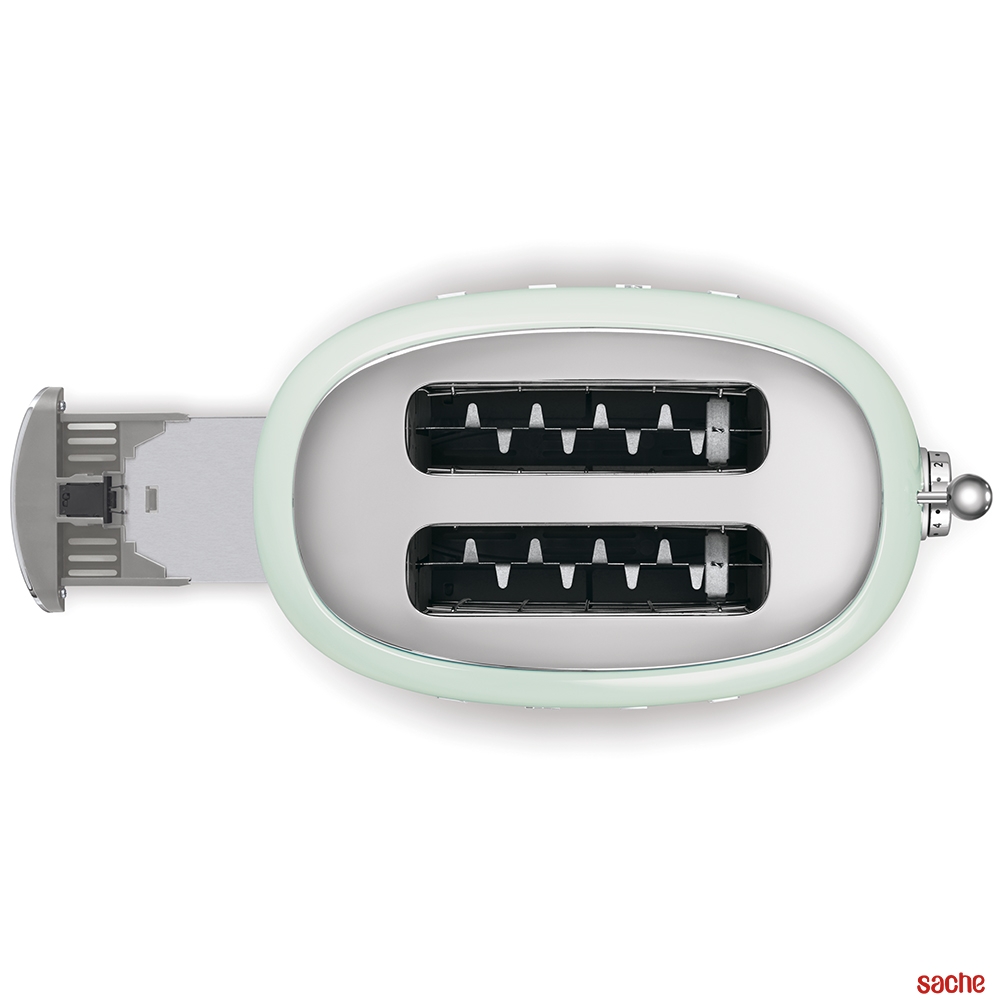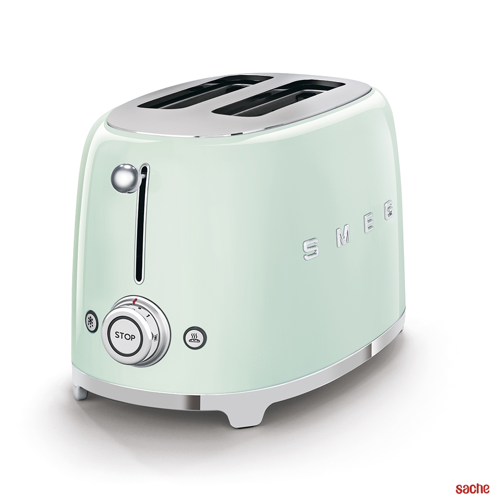 Le grille-pain Smeg TSF01PGEU vous séduira par son esthétique rétro années 50, son coloris vert d'eau et acier mais aussi par son format compact !