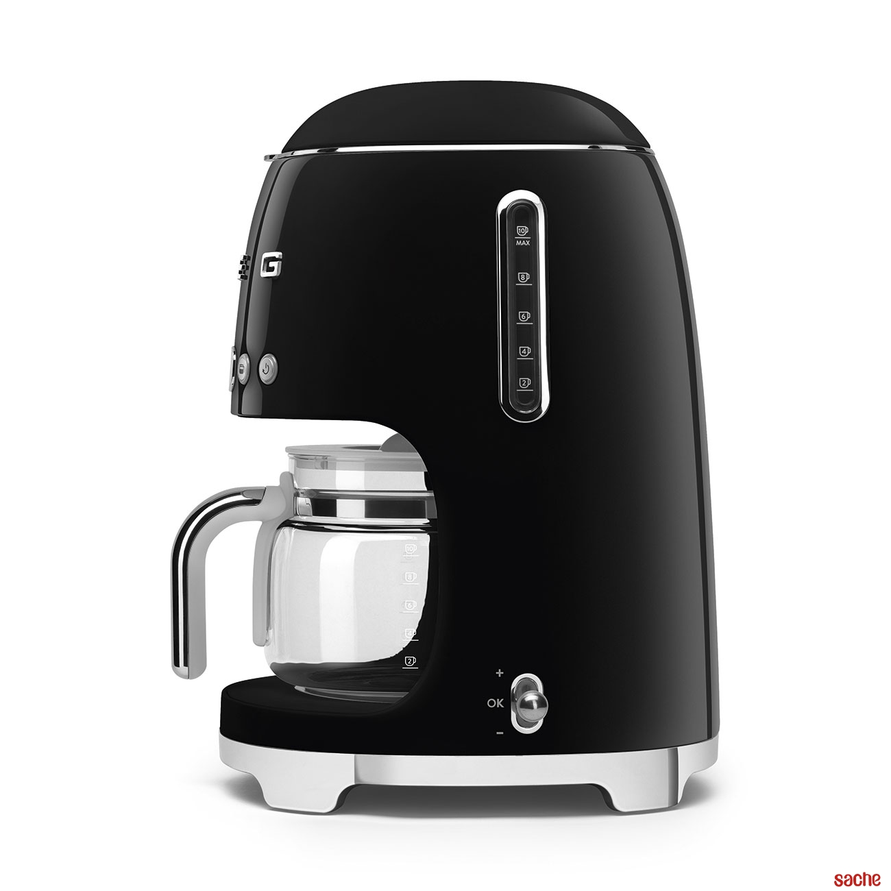 a cafetière DCF02BLEU de SMEG se pare d'un design noir, aux formes élégantes et style année 50 pour s'intégrer dans toutes les cuisines.