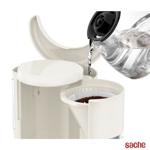 Avec la cafetière électrique SOLEIL ivoire, dégustez un savoureux café filtre jour après jour, en toute simplicité. Élégante avec son design rétro et bandeau inox, cette cafetière filtre illuminera votre cuisine. Simple et efficace, elle offre une multitude de fonctions pratiques : Capacité de la verseuse en verre de 10-15 tasses : 1,25 l de café chaud Porte-filtre pivotant et amovible : facile à remplir, facile à nettoyer Système anti-goutte pour servir le café même lorsque la cafetière est en fonctionnement Bouton marche/arrêt : possibilité d'allumer/éteindre l'appareil à tout moment Niveau d'eau visible à l'avant : facile de remplir et doser l'eau Facilité d'accès au réservoir d'eau Maintien au chaud : jusqu'à 30 minutes après arrêt automatique Composez votre set petit-déjeuner dans la même gamme avec la bouilloire électrique et le grille-pain !