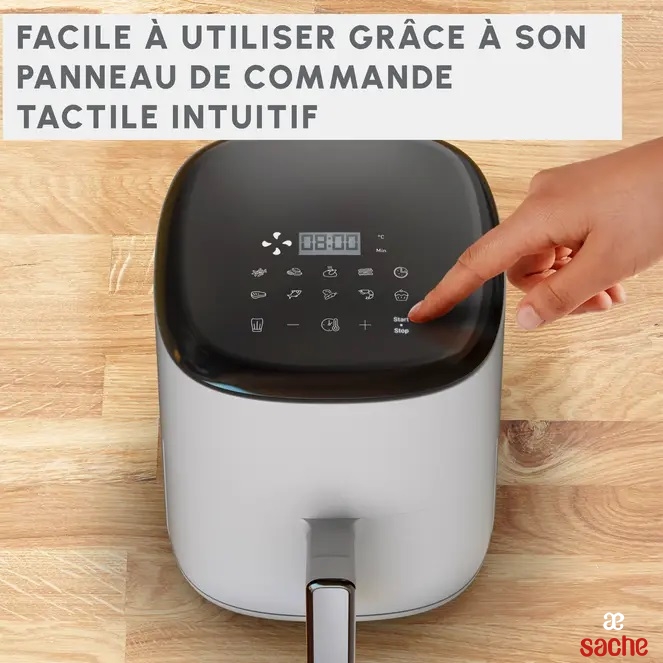 - 10 programmes de cuisson sans surveillance : Frites, Poulet, Steak, Poisson, Desserts, Pizza, Nuggets, Légumes, Crevettes, Bacon.