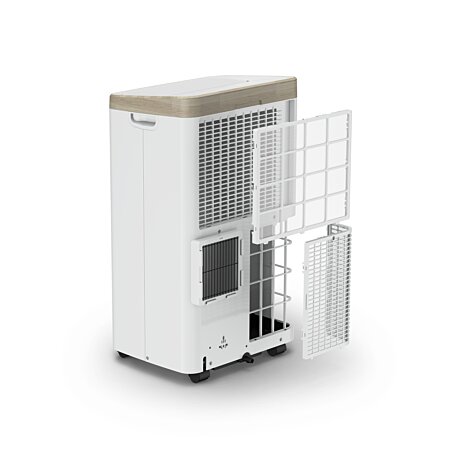 Restez au frais tout en limitant votre consommation d'énergie ! Découvrez turbo eco sense, un climatiseur portable puissant de classe a. S'intégrant facilement dans n'importe quelle pièce grâce à sa finition imitation bois unique, il offre une grande couverture allant jusqu'à 100 m³. L'idéal pour rester au frais les mois d'été avec un appareil au design élégant. Sa fonction eco vous permet de consommer moins d'énergie, en toute simplicité : turbo eco sense définit automatiquement une température cible inférieure de 3 °c à la température ambiante. Une fois cette température atteinte, l'appareil s'éteint.