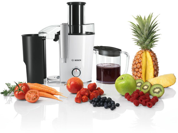 Centrifugeuse puissante et performante, avec large cheminée de remplissage pour introduire des fruits et des légumes entiers (aucun pré-découpage). Rapide, facile à utiliser et à nettoyer.
