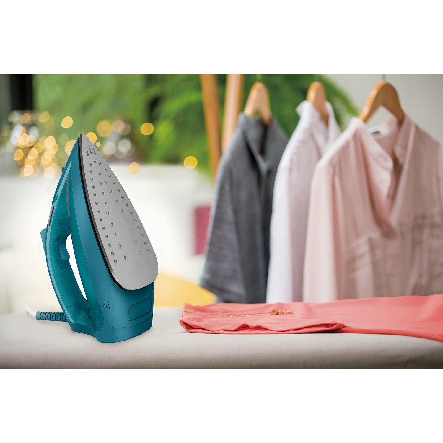 Avec son format compact et son poids de moins d'un kilo, ce fer à repasser bleu offre une prise en main agréable. Vous pourrez repasser longtemps dans les meilleures conditions de confort. Ce modèle est doté d'une gâchette vapeur ergonomique, d'un réservoir de 200 ml, avec un système anticalcaire qui simplifie le nettoyage.