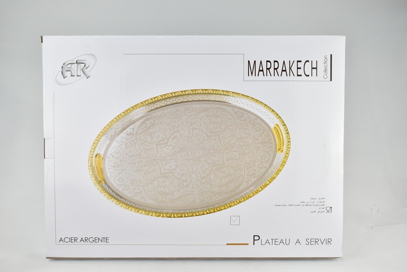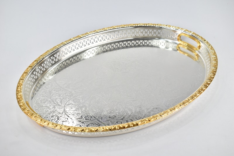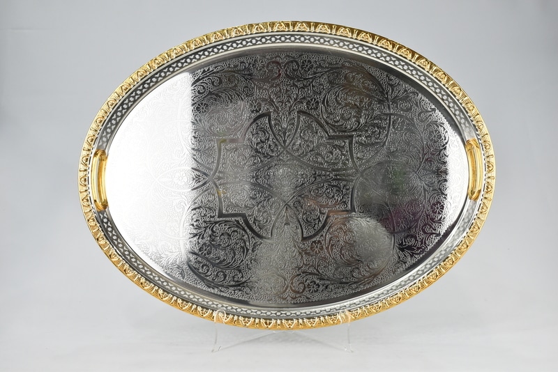PLATEAU A SERVIR OVAL 55*40 CM DORE/ARGENTE EN ACIER INOXYDABLE
